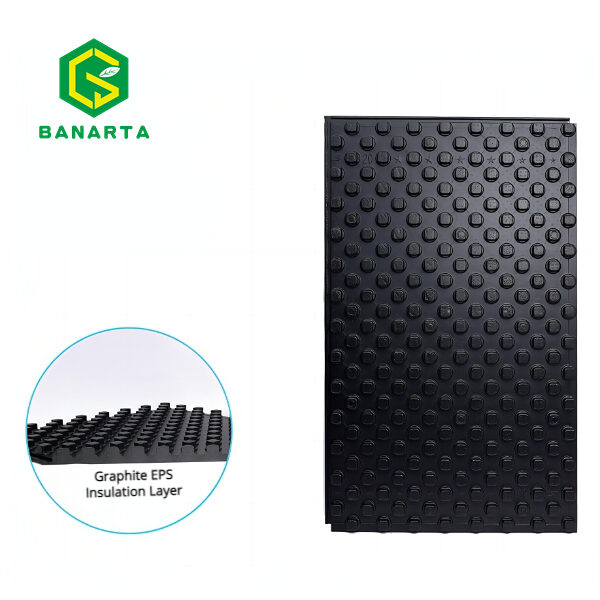 Gaphite EPS Radiant Panel is a kind of integrated panel made by steam double pressure, it is composed of high density graphite expanded polystyrene and food grade high impact HIPS film.